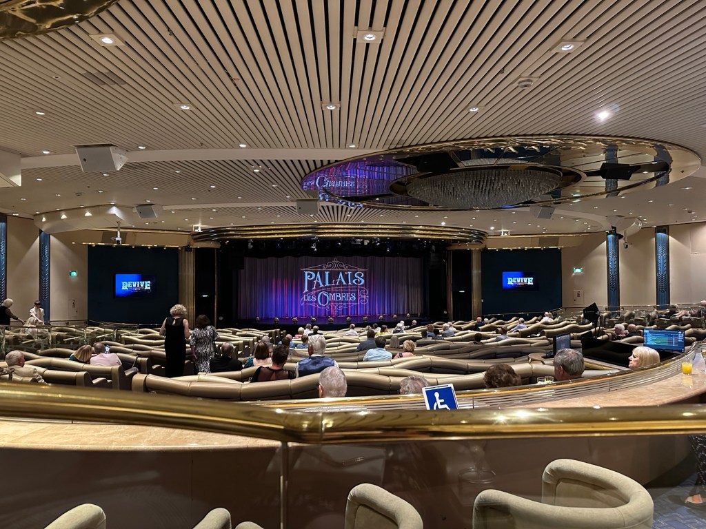 We also opted to see the broadway show this evening as well – Palais des Ombres. It was described as a cross between Greatest Showman and Moulin Rouge, and it was phenomenal! The cast are amazing, and really brought the world to life with their performances! The show lounge itself seats around 800+ guests, and we had no issue getting a seat! You are also offered drinks on your way in, and have a drinks holder to keep these safe during the performance