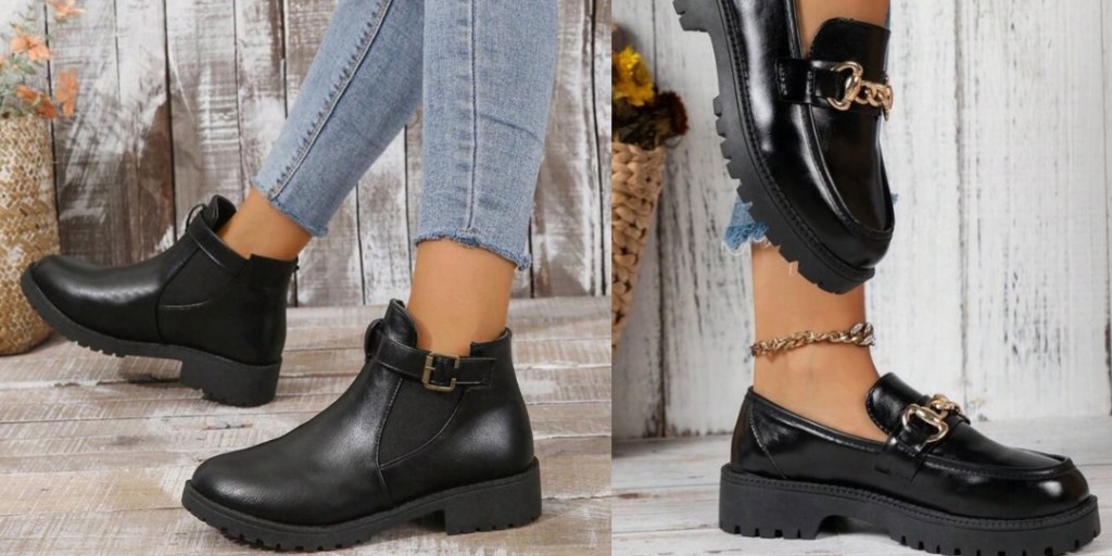 I then added a cream cardigan which would go with every option depending how cool it was, and a pair of boots and a pair of shoes to round them out: