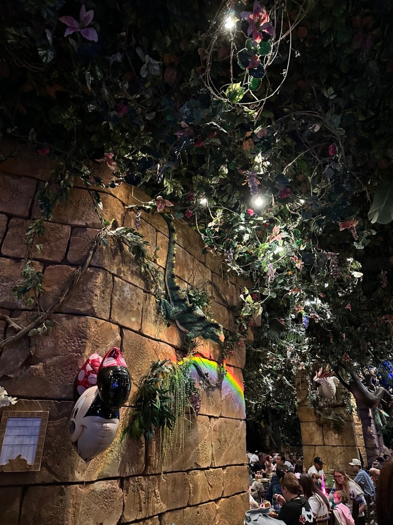 Another brilliant restaurant, is Rainforest Cafe. Located at the far end of the village, you walk into a fully immersive dining experience like nothing you may ever have been to before. after walking through the shop, you are greeted by gigantic fish tanks full of colourful marine life, where you check in and head deeper into the rainforest to your table. Throughout your time the animals surrounding you will wake up and make noises and move around, with the climax being a huge thunderstorm with light and sound effects. Serving a range of meals from burgers and steaks to pasta dishes and fajitas, and you can wash it all down with some classic cocktails and beers.